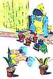 水が一度に植木にかからず、少しずつ土にしみ込ませる方法です。  |