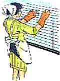 ホコリが溜まりやすいのでこまめにハタキで払いましょう。汚れが目立てば洗剤をぬるま湯で薄めたものを軍手に浸し、手にはめて羽根(ルーバー)を指にはさんで拭き取ります。その後きれいな水で同じ様に軍手で洗剤分を拭き取ります。